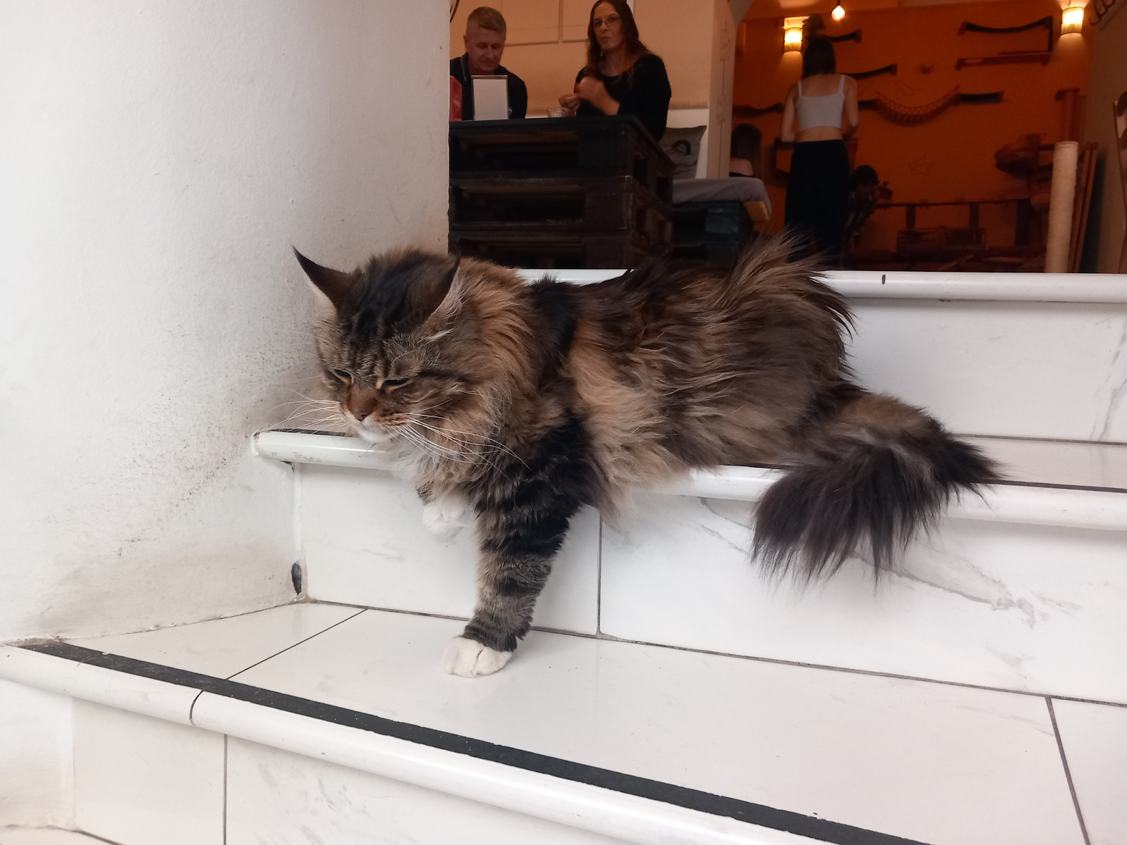 A szabálykövetés hiánya abban is megnyilvánult, hogy Carlos többször is lezárt ösvényeken vezetett minket. (Mellesleg ezeken is bőven találkoztunk más túracsoportokkal és bringásokkal; a gyakori sztereotípiát megcáfolandó hangsúlyoznám, hogy mind canariók voltak.) Egy ilyen letérés azért történt, mert meg akart mutatni egy barlangot. A barlang egy sziklafal oldalában volt, elég nehéz volt megközelíteni, ezért csak néhányan indultunk el fölfelé. Jómagam csak addig mentem, amíg a barlang szélét meg nem pillantottam, aztán visszafordultam.